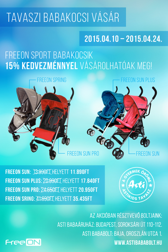 Freeon sportbabakocsik 15% kedvezménnyel vásárolhatók az akcióban résztvev? boltjainkban: